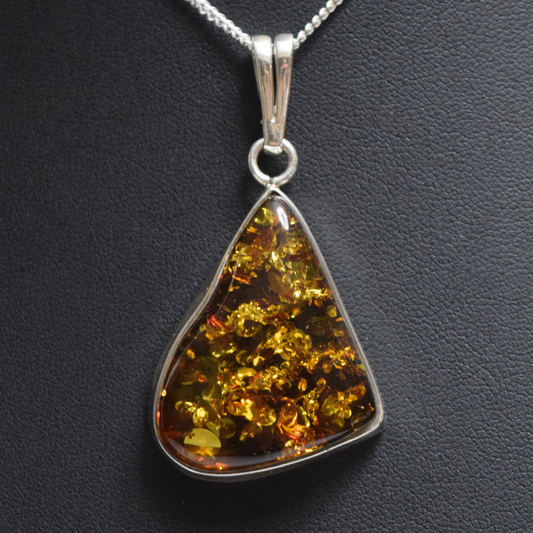 Baltic Brilliance - Triangular Cognac Amber 925 Sterling Silver Necklace (Pendant with Sterling Silver Chain)