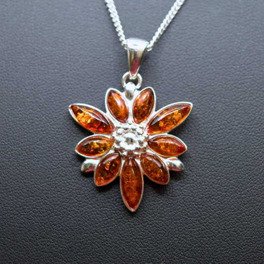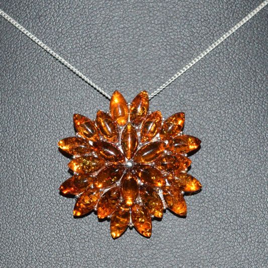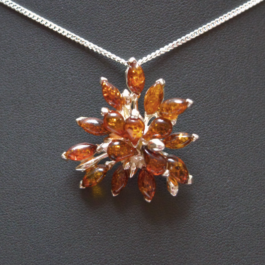 Amber Blossom - Classic Multi-Stone Floral Baltic Amber 925 Sterling Silver Necklace (Pendant with Sterling Sliver Chain)
