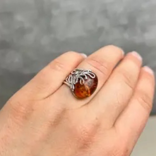 Amber Allure - Artisan-Crafted Gorgeous Baltic Amber 925 Sterling Silver Ring