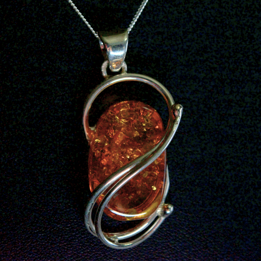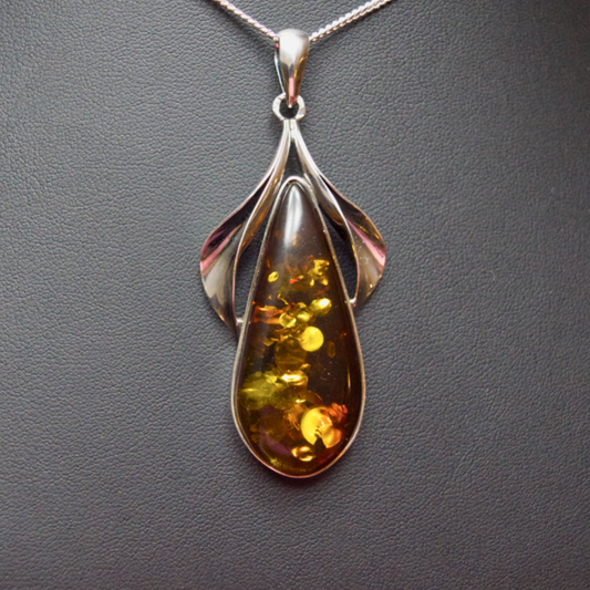 Amber Sails - 925 Sterling Silver Wrapped Brilliant Baltic Amber Necklace (Pendant with Sterling Silver Chain)