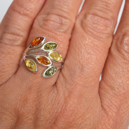 Amber Spectrum - Multicolor Baltic Amber 925 Sterling Silver Ring