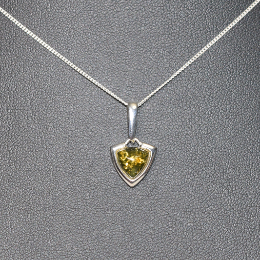 Emerald Edge - Modern Green Amber Triangular 925 Sterling Silver Necklace (Pendant with Sterling Silver Chain)