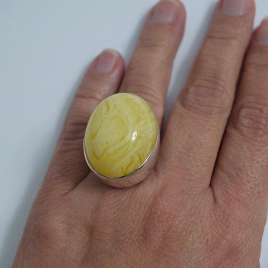 Lemon Zest - The Butterscotch Amber Arc 925 Sterling Silver Ring