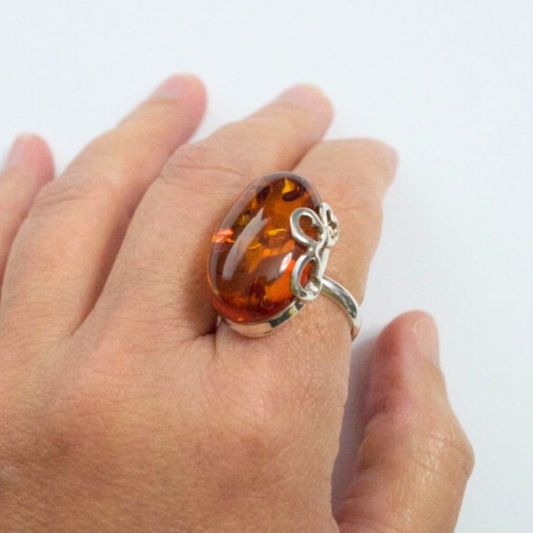 Cognac Hearts - Elegance with Hearts on Amber 925 Sterling Silver Ring