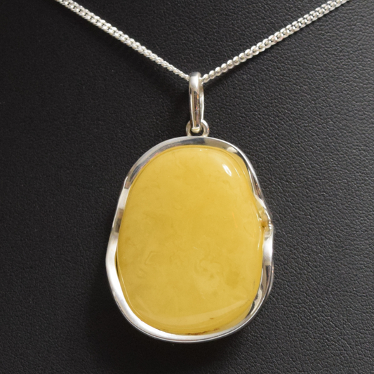 Lemon Luminescence - 925 Sterling Silver Encased Baltic Amber Necklace (Pendant with Sterling Silver Chain)